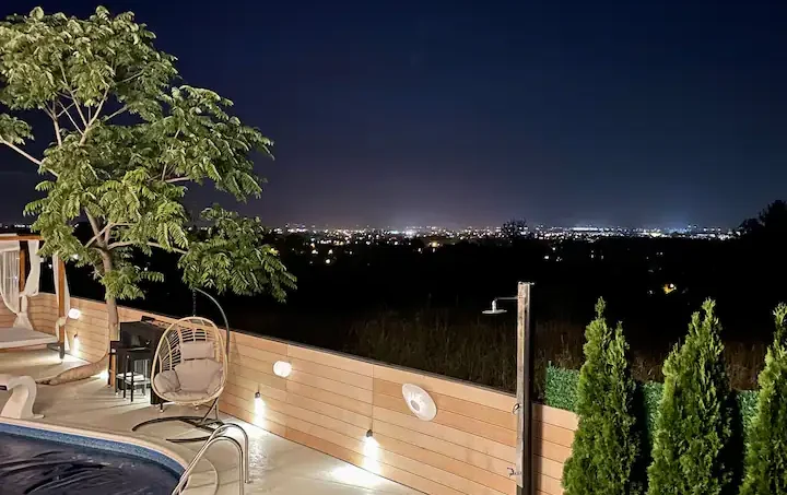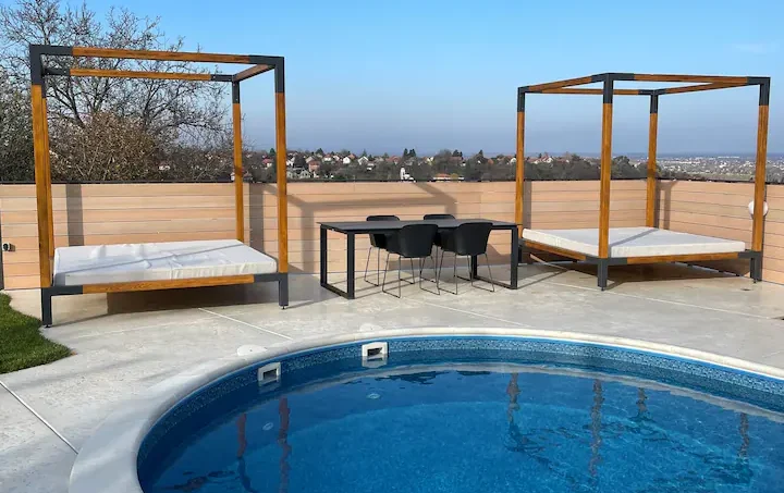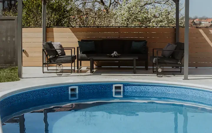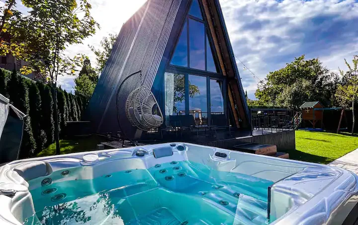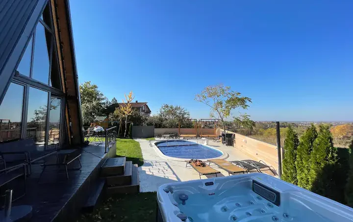 A frame pool house poseduje bazen, hidromasažni đakuzi koji se koristi tokom cele godine i greje se na temperaturu do 39°C.